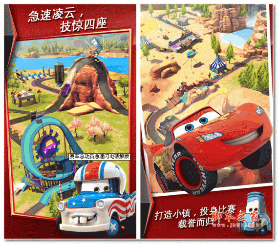 赛车总动员急速闪电破解版是赛车总动员急速闪电游戏的免验证版本,本版本无需连接VPN就可开始游戏。赛车总动员急速闪电破解版是一款非常好玩的赛车类游戏,在游戏玩家将扮演著名的赛车角色参加比赛,但是在此之前你必须先好好地经营专属自己的汽车小镇,利用游戏提供的固定金额的金币建立各种商店,然后利用商店的盈利增加金币的收入。然后用钻石解锁新的汽车, 邀请它们来一起赛车,而且比赛的赛道还能用金币和钻石购买元素来设计。
