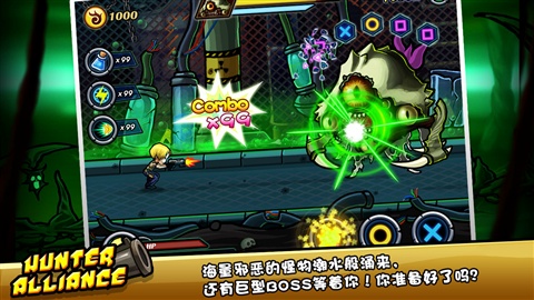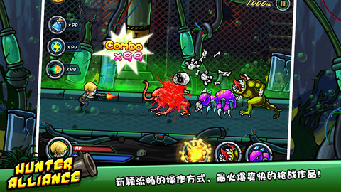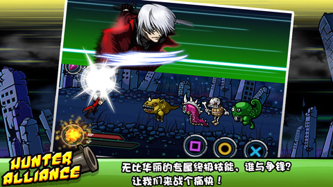 《猎人联盟》这是一款有趣的横版动作闯关类游戏,游戏的画面制作的还算不错,游戏内容也挺有新意的。游戏的主要目的是考验玩家们的快速反应能力,并且获得众多媒体好评与一致推荐,可以说是一款超炫的跑酷+射击游戏。