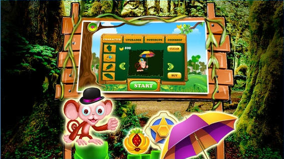 一只拿雨伞的猴子吗?在空中起跳收集香蕉。可以选着使用帽子和雨伞和电源包。帮助他获得更多的果汁等水果,但要小心!电池用完之前,确保你的土地上的草丘!